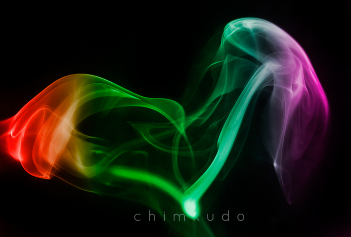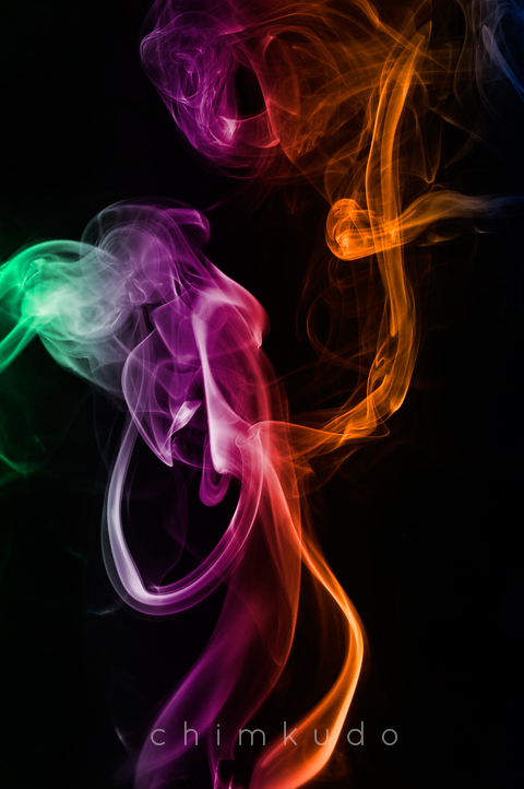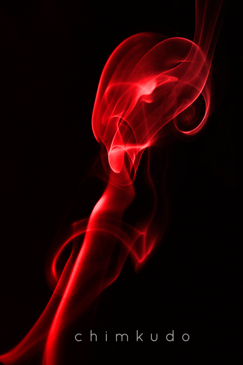 Vấn đề ở đây với thể loại này là chúng ta nên chụp trên nền đen vì khói đã bản thân là màu trắng. Để tạo được nền đen thì chúng ta sử dụng 1 vật đen(ko bóng) để ở phía sau là được. Còn bố trí ánh sáng thì lại càng đơn giản, nói thế thôi chứ đánh thẳng tưng vào ko được đâu =)). Flash nên đánh từ trái (hoặc phải) qua, hơi chếch từ dưới lên thì sẽ tạo được các quầng sáng ven của khói rất là đẹp. Che thêm miếng card đen để tránh ánh sáng từ flash đánh vào background là được. Như vậy là xong mục bố trí ánh sáng. Còn khói thì chúng ta có thể dùng vô vàn các thứ để tạo, từ que gỗ tới hương, giấy….đủ thứ. Thêm chút nước ẩm ẩm thì khói sẽ ác hơn :D. Giờ là lúc chụp thôi…shot shot shot….fap fap fap :))