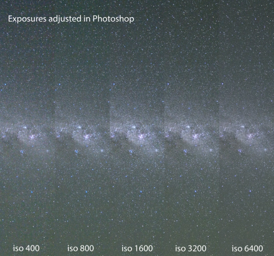 Jeff Gaunt đã thực hiện một bài test bằng cách chụp các bức ảnh bầu trời sao ở các ISO khác nhau(các thông số khác giữ nguyên)